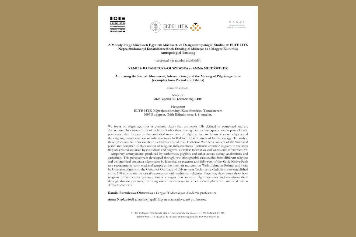 Az előadás címe: Animating the Sacred: Movement, Infrastructure, and the Making of Pilgrimage Sites (examples from Poland and Ghana)